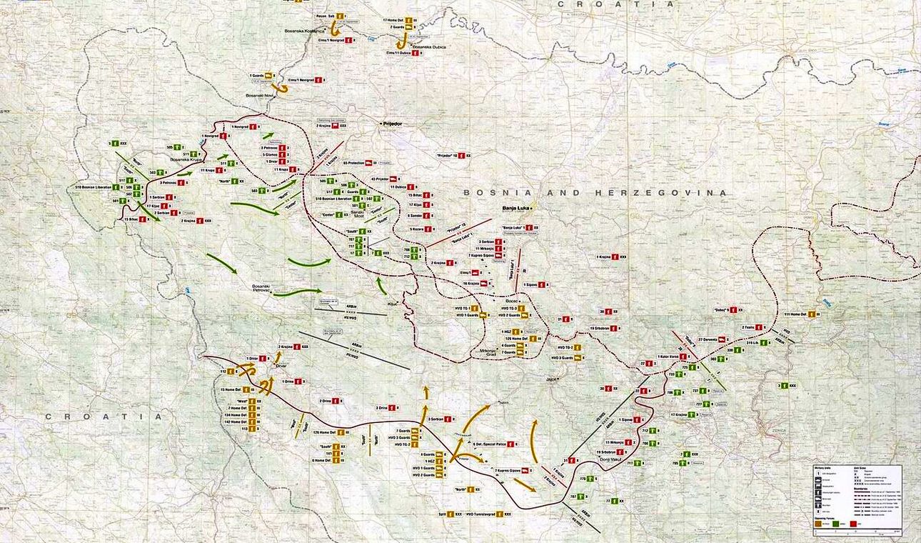 Zbog ponavljanja masakra na sarajevskoj tržnici Markale, 28. kolovoza 1995., zračne snage NATO-a tijekom noći 30. kolovoza 1995. godine pokreću snažnu kampanju zračnih udara na bosanske Srbe pod nazivom Operacija Namjerna sila. Vojska bosanskih Srba biva snažno rastrojena. U tom olakotnom trenutku dok su oči svijeta bile uprte u nebo i dok su se brojale štete Srba oko Sarajeva, vojni stožeri ABiH, HV-a i HVO-a iskorištavaju trenutak nemoći VRS i pokreću združenu ofenzivu.